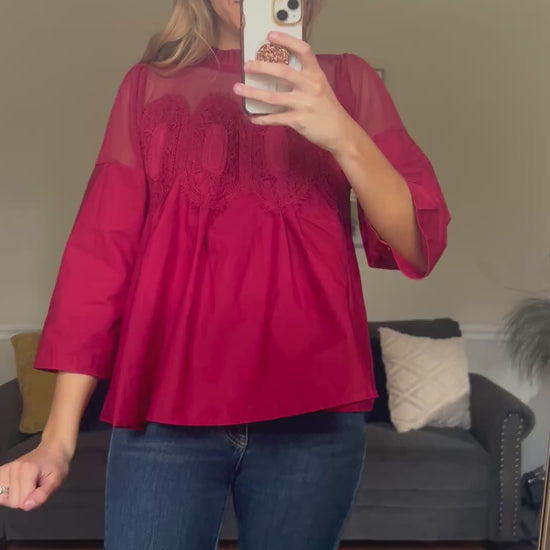 This trending topic is the perfect addition to your wardrobe. She can be made festive or be worn any time. We love the feminine details too! Fits true to size.