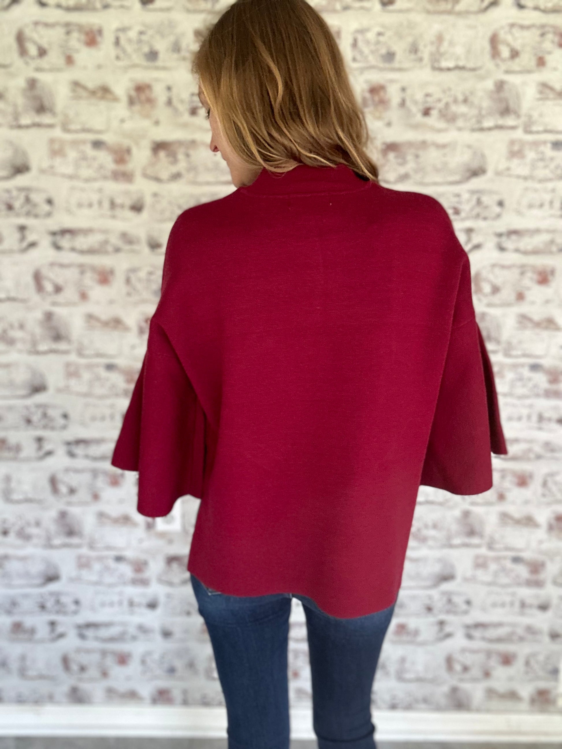 This sweater is so incredibly soft and can easily be dressed up or down depending on what you pair it with. We love it with jeans but could see it dressed up with a skirt as well for the holidays! The sleeves are so fun and kick the style up a notch as well!