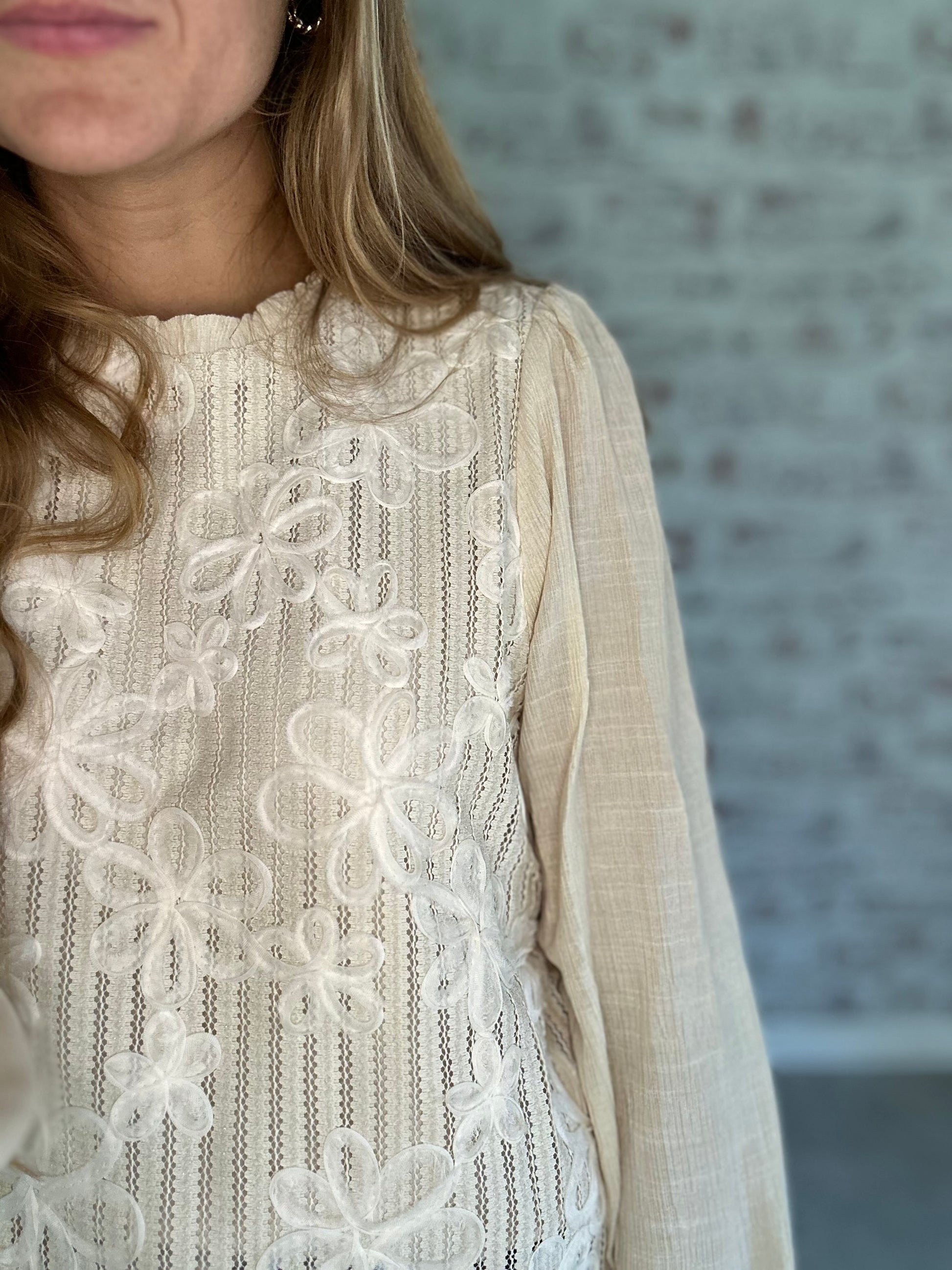 I think the lace on this blouse is absolutely stunning! I love this blouse for work, but it can definitely be dressed down with a cute pair of jeans too. I have a pencil skirt in my closet that it would look darling with! This top isn’t super long, so keep that in mind while shopping!