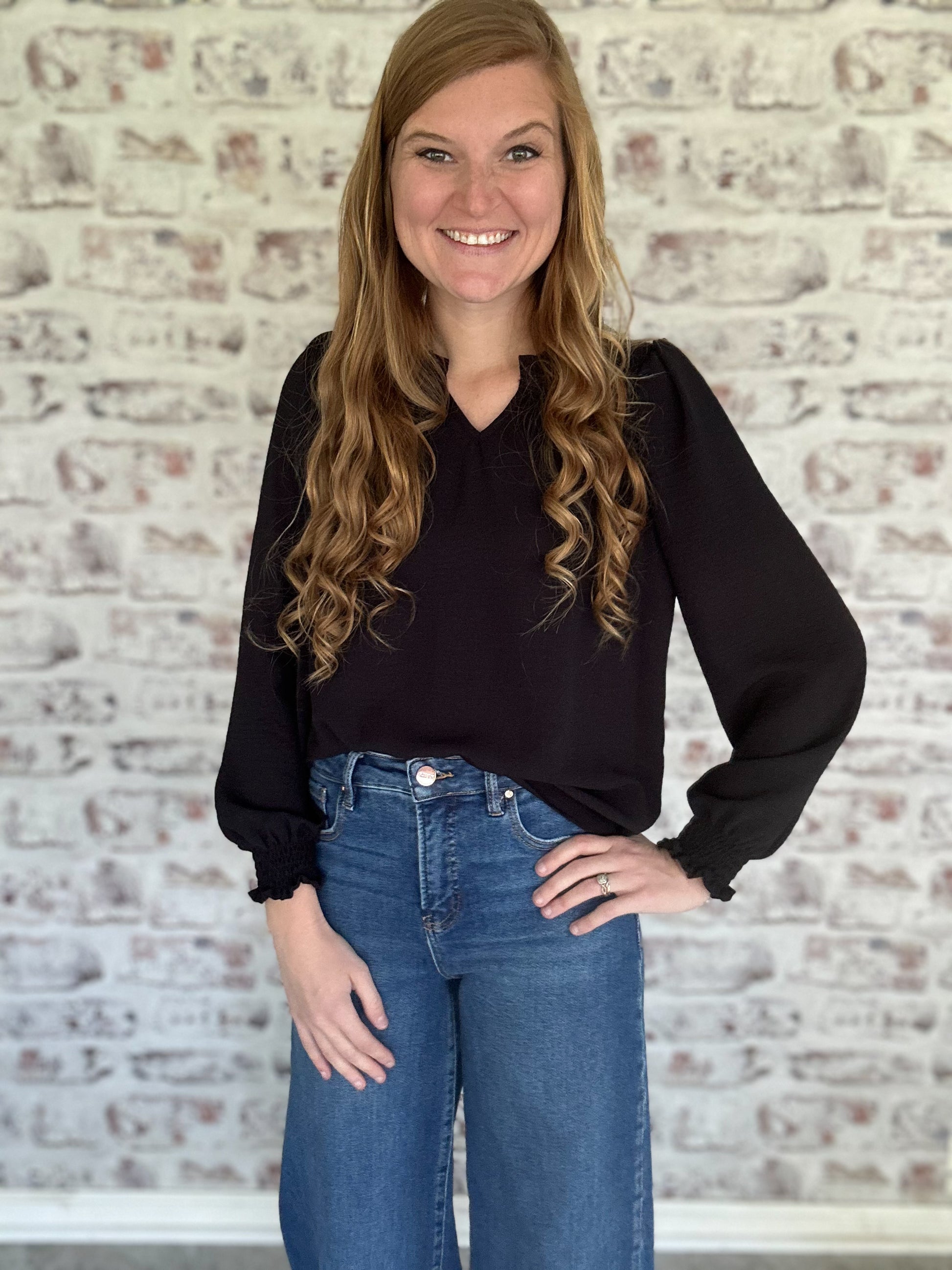 This top is a necessary staple for your wardrobe! It fits true to size and feels nice and blousy. The neck line is flattering for all body types and it is a true elevated basic.